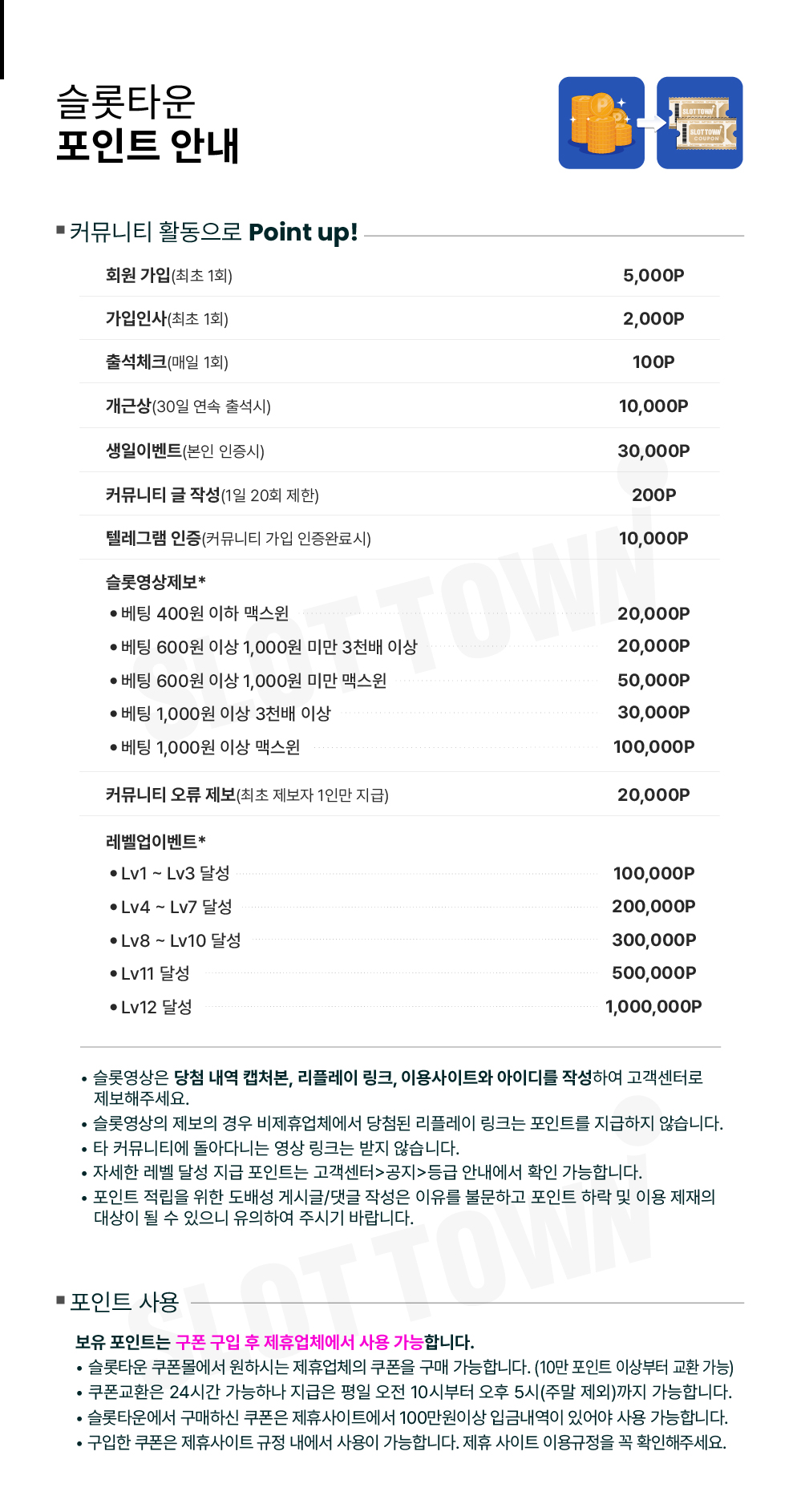 • · 슬롯타운 포인트 안내