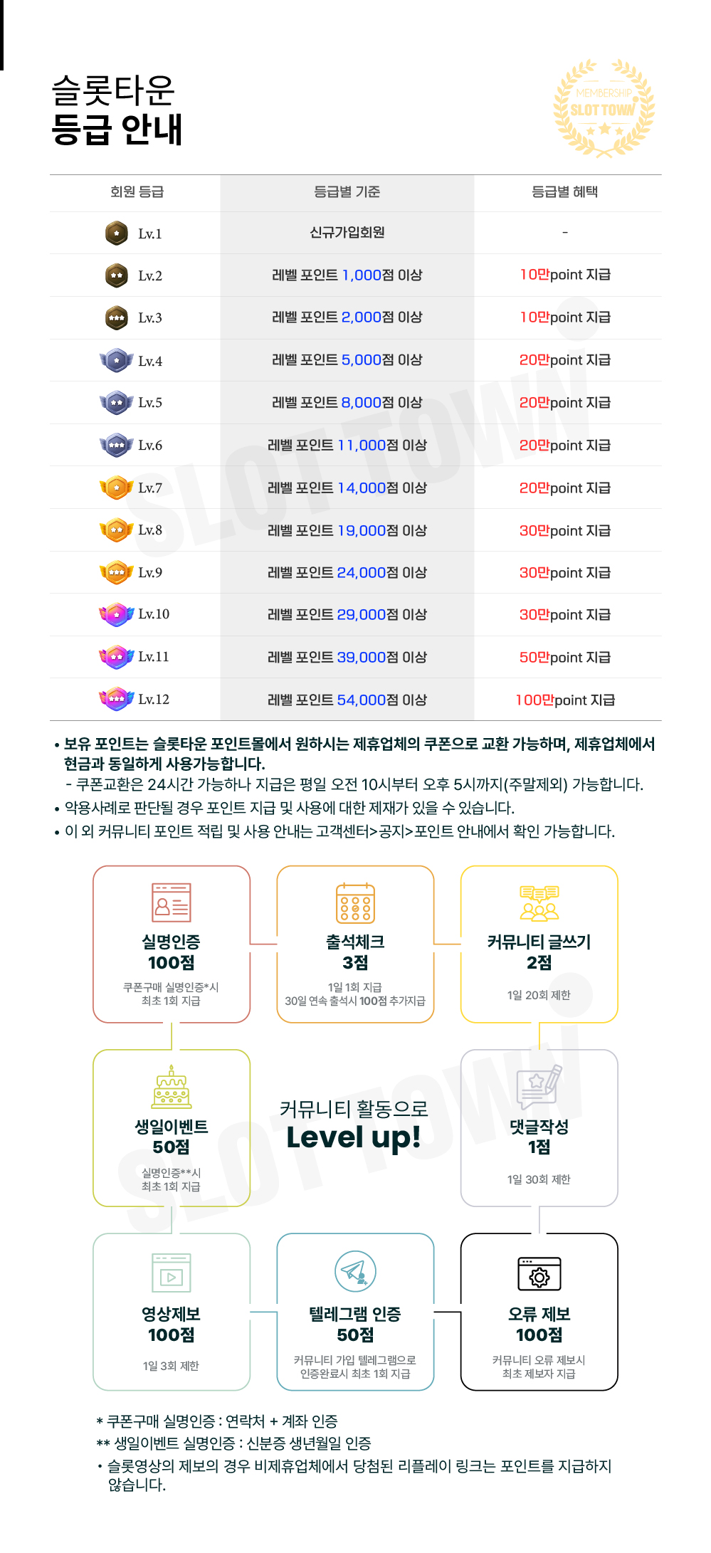 • · 슬롯타운 레벨 등급 안내